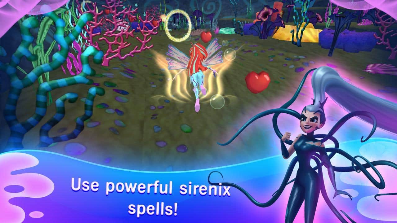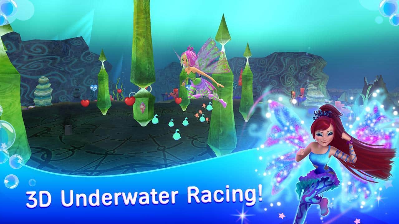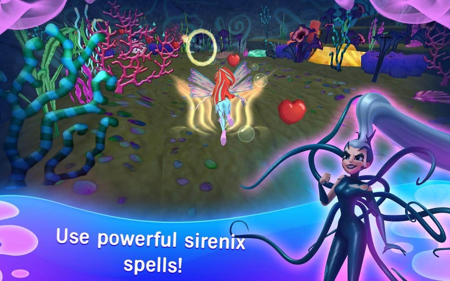 Winx Sirenix Power - sumérgete en las profundidades del océano con un divertido arcade para Android. Podrás jugar como las hadas Bloom o Stella. Por supuesto, el juego fue creado basado en la serie "Winx Club". El juego tiene 5 etapas - desde el entrenamiento hasta la recuperación. A lo largo de tus aventuras te encontrarás tanto con buenos deseos como con enemigos. ¡Pero tu objetivo principal es lograr salvar a las selkies antes que Tritannus, mientras que insidiosamente contamina el océano! En cada nivel tienes que llegar a las 3 estrellas y recoger todos los bonos en forma de gemas. ¡Y recoger corazones rojos y azules limpios de barriles de petróleo, competir en una carrera en la montaña "Ojo de Tiburón" y más! Echa un vistazo aquí, hay más juegos para chicas