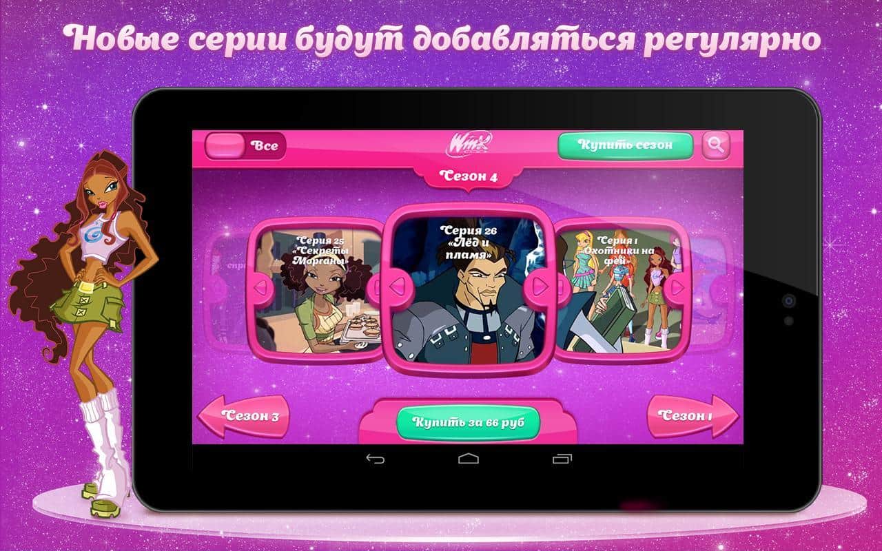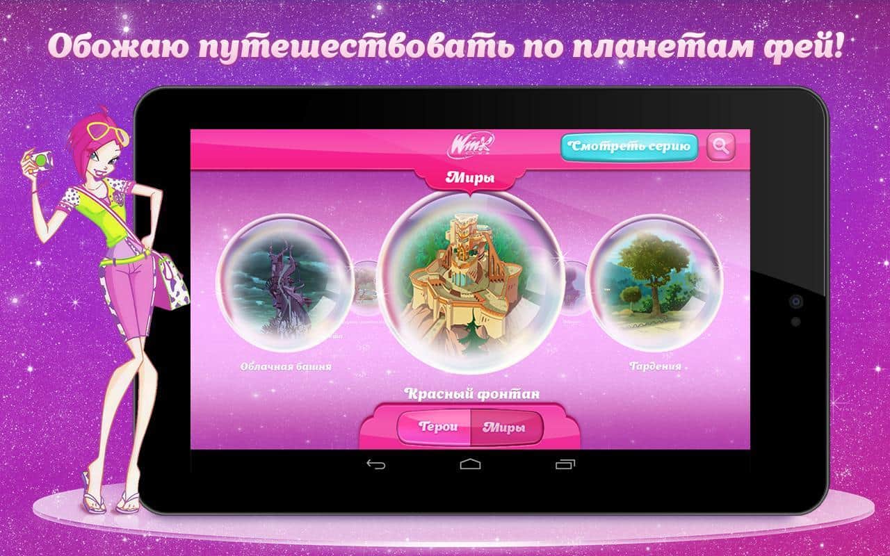 Winx (Winx club): todas las series en Android del desarrollador AppsMinistry LLC, para las pequeñas fashionistas. La descripción de los personajes principales y los mundos que seguramente deleitarán a las niñas tanto en casa como fuera de ella. Bonita vista.