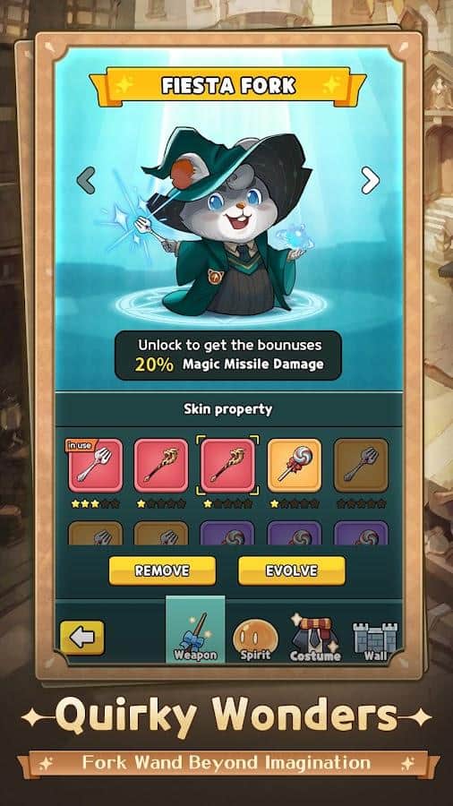 Ratón Mago: Defensa de la Escuela - un juego para aficionados a mundos mágicos y estrategia con elementos de rol. ¡Lucha contra feroces oleadas de criaturas mágicas usando los hechizos más poderosos! Cada hechizo que aprendes añade variedad a tus habilidades, y una combinación exitosa te ayuda a derrotar a tus enemigos con la máxima eficiencia. ¡Invoca guardianes legendarios y entrénalos para llevar a la academia a la victoria en la batalla final contra las fuerzas oscuras! Desbloquea y mejora las instalaciones académicas como la sala común o el laboratorio de investigación para mejorar la defensa mágica de la escuela.