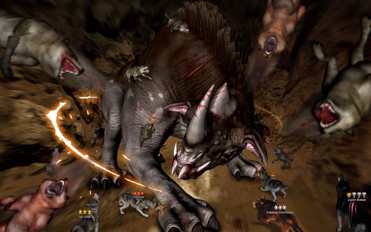 Wolf Online - comienza una guerra cruel y aterradora entre tres familias de lobos. Elige uno de los tres bandos y haz todo lo posible para que tu clan domine sobre los demás. En el juego hay una gran cantidad de animales que se pueden dividir en dos tipos. Los primeros pueden atacarte: tigre, león, rinoceronte, etc., y los segundos esperarán hasta que los comas: conejo, ciervo y otros. También en el juego pueden aparecer monstruos muy poderosos que no podrás vencer solo. Llama a tus amigos y juntos intenta derrotarlo. El juego tiene un sistema desarrollado para mejorar a tu valiente lobo.