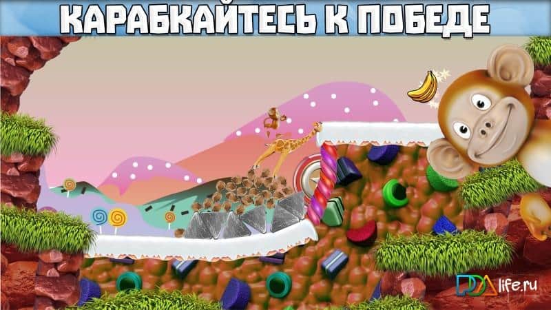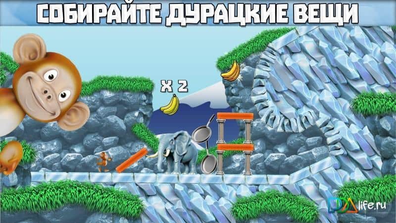 Wonky Tower - La Odisea de Pogo – un juego en Android en el que ayudarás al mono a recoger plátanos. A nuestro mono Pogo le encantan los plátanos y tu tarea es ayudarlo a alcanzar todos los plátanos a través de varios medios y dispositivos. Coloca cajas de mono en la ruta que son necesarias para llegar fácilmente al objetivo, y construye una variedad de estructuras y puentes para pasar el nivel. Conecta tu imaginación e ingenio y utiliza cajas, columnas, troncos e incluso animales en forma de cimientos para diversas estructuras. Sube a la construcción inestable y recoge todos los plátanos. El juego cuenta con 5 mundos únicos, un personaje divertido, y el juego te complace con física realista.