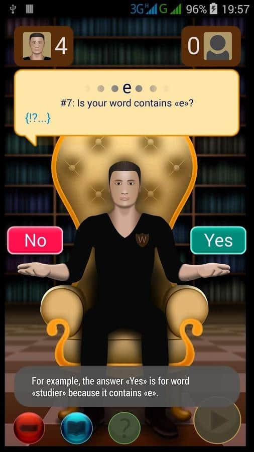 Wordeuz:ES - mecánicas de juego basadas en texto que establecen el principio de preguntas y respuestas, tu trabajo es hacer preguntas a tu oponente para adivinar la palabra. Parecería algo complejo y ciertamente nada nuevo, pero no es así. Según los desarrolladores, la IA utilizada en el juego está a un nivel bastante alto y llevarla en la dirección deseada será difícil. Cabe destacar que la base de datos de la IA contiene más de 250,000 palabras de áreas como música, religión, arte, historia, electrónica, biología, psicología, medicina, química, física y muchas otras. La interfaz del juego y las mecánicas de control son simples y claras, lo que te permitirá concentrarte en la jugabilidad.