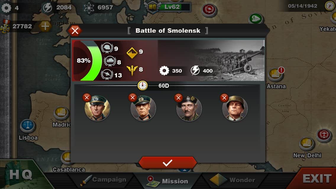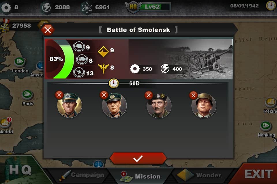 World Conqueror 3 – estrategia militar para Android en la que debes librar guerras contra otros países e intentar conquistar el mundo. La guerra está a punto de comenzar y tú, como comandante en jefe, asumirás toda la responsabilidad y llevarás a cabo operaciones militares contra otros países. Contrata generales militares que fueron entrenados en academias prestigiosas y mejora sus habilidades durante el juego. En este juego encontrarás 32 campañas históricas con 150 misiones militares. Elige entre tres niveles de dificultad y derrota a tus enemigos, gana grandes premios y logros.