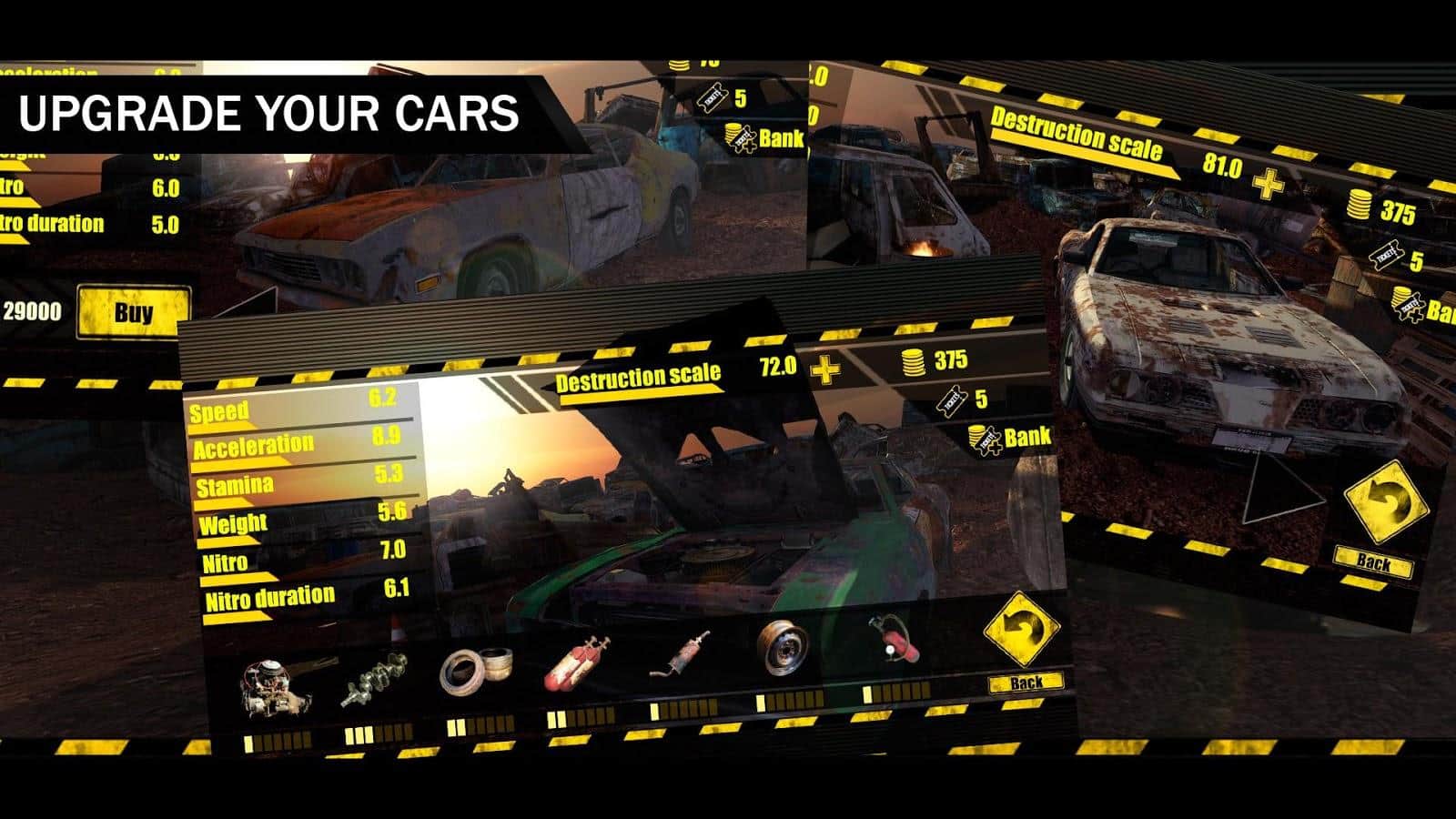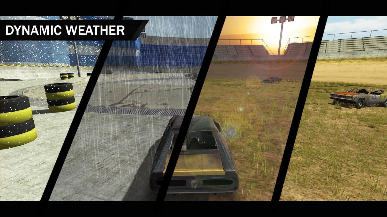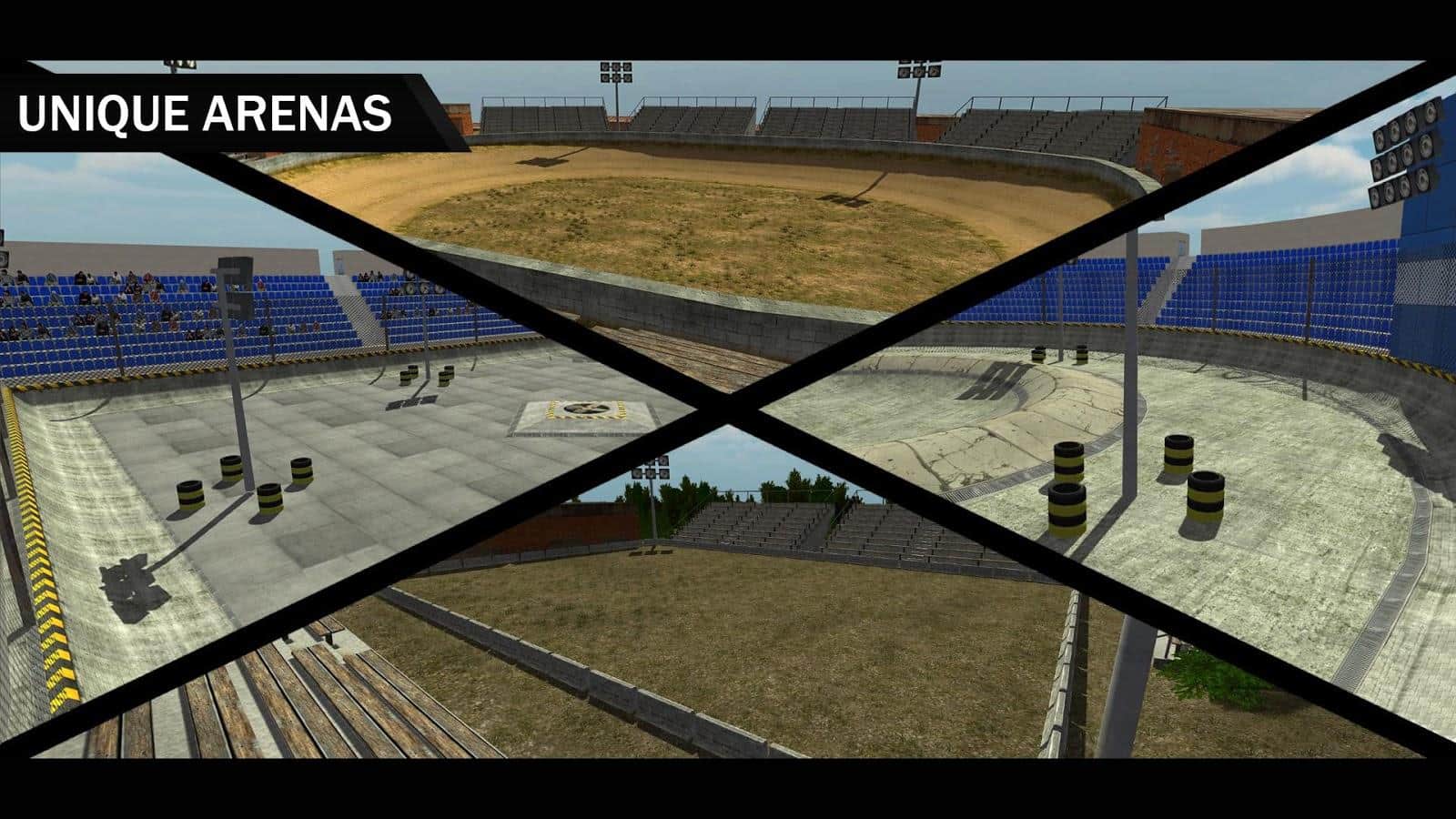 Mundo de Derby – carreras mortales en coches americanos auténticos. Elige un coche adecuado que llegará a ti directamente desde el vertedero y comienza la carrera en diferentes arenas. Conduce a alta velocidad alrededor de la arena y choca con diferentes objetos y otros coches, causando daños sustanciales. Elige un modo de juego apropiado y disfruta de las colisiones masivas y el daño realista a los coches. Tus oponentes en este juego tienen un cerebro poderoso, así que no esperes un resultado rápido del juego. Realiza tus apuestas antes de cada juego y gana dinero con ello. Las características del juego son gráficos excelentes, condiciones climáticas cambiantes y física realista.