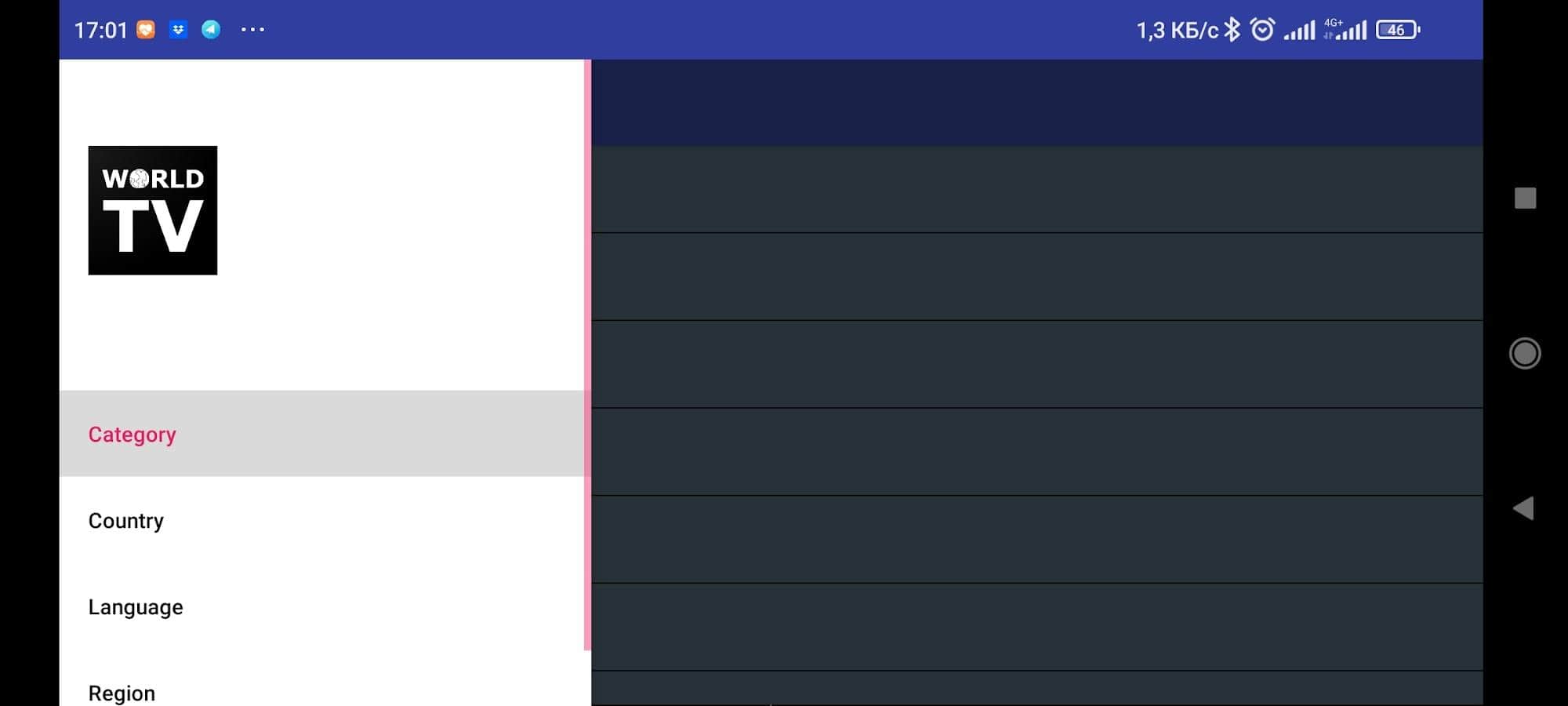 Cliente WorldTV - Elige el país, los canales de televisión que deseas ver en tu pantalla y luego decide qué canal de televisión ver y ¡míralo! Hay 4 tipos de clasificación en la aplicación: Países, Categorías, Idiomas, Regiones. Todos los canales están disponibles públicamente, están en Internet y cumplen con las normas de un país en particular, así que no tienes que preocuparte si algo de repente no funciona, esos son los problemas del propio canal. ¡Usa la aplicación y mira los canales más populares y no tan populares en tu propio teléfono! La aplicación utiliza el "reproductor VLC".