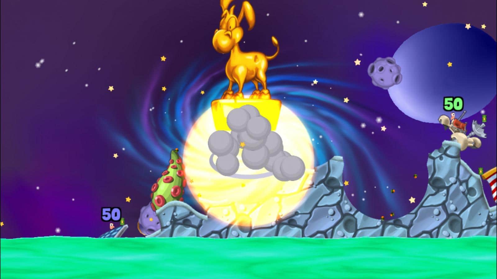 GUSANOS - ¡los buenos viejos gusanos han vuelto al negocio! Como siempre, solo tendrás que esperar una máxima destrucción y muerte a tus enemigos. El control del juego es muy simple, todo lo que necesitas es arrastrarte y hacer estallar a los gusanos del equipo enemigo. Lo más notable en este juego, como siempre, es tu arsenal de armas, que va desde un gancho común hasta una bomba sagrada. Todo aquí está creado para destruir, quemar y hundir a los oponentes.
