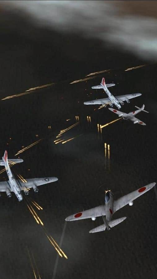 Fondo de pantalla en vivo de combate aéreo de la Segunda Guerra Mundial - fondos de pantalla en vivo para Android. ¡La batalla de verdaderos cazas directamente en su pantalla! Más de 45 modelos de aviones de la Segunda Guerra Mundial sobre las vastedades del Océano Pacífico. Combate aéreo en colores brillantes, cambio de día y noche, diferentes tipos de vista, espectacularidad de la caída de cazas derribados, lluvia de disparos sobre el enemigo - todo esto en batallas aéreas a gran escala con una calidad de detalle sorprendentemente cautivadora.