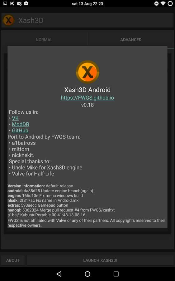 Xash3D FWGS es un fork del motor compatible con GoldSource de Valve. Esta aplicación te permite jugar Half Life y juegos basados en el motor del juego. Funciona de manera muy simple, creas una carpeta separada donde descargarás juegos, y luego, usando esta aplicación, puedes crear un acceso directo para estos juegos y podrás ejecutarlos. Además, puedes ejecutar los mods amateur que se han hecho en el motor de Half Life, así que los usuarios más experimentados pueden probar su propia moda.