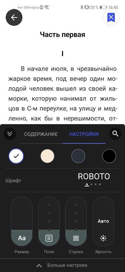 Estoy leyendo - Leer libros en formato papel no es relevante ahora, ¡es hora de descargar una aplicación con la capacidad de leer libros a través del teléfono! Selecciona ciertos libros de un gran catálogo de libros y comienza a leerlos, antes de configurar la apariencia del texto en detalle. Decide sobre la fuente, el tamaño de las letras, su color y el fondo en sí. Agrega libros interesantes a tus favoritos, y luego regresa a ellos nuevamente para continuar estudiando. También puedes seleccionar fragmentos y añadirlos a notas, y luego volver a leerlos.