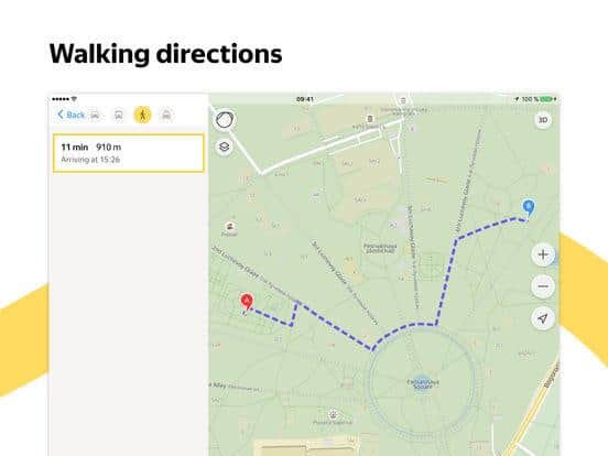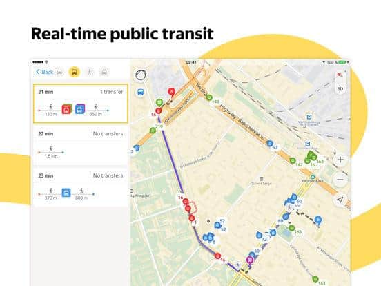 Yandex Map solía considerar que estas tarjetas no eran las mejores, pero Yandex ha organizado sus asuntos e introducido soporte para realidad aumentada. Ahora puedes pavimentar el camino hacia cualquier punto y con la cámara ver las flechas en la pantalla que muestran hacia dónde vas, ahora no necesitas buscar orientación, porque la dirección se mostrará en tiempo real. Sin embargo, ten cuidado y mira no solo en el smartphone, sino también a los lados.