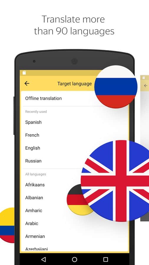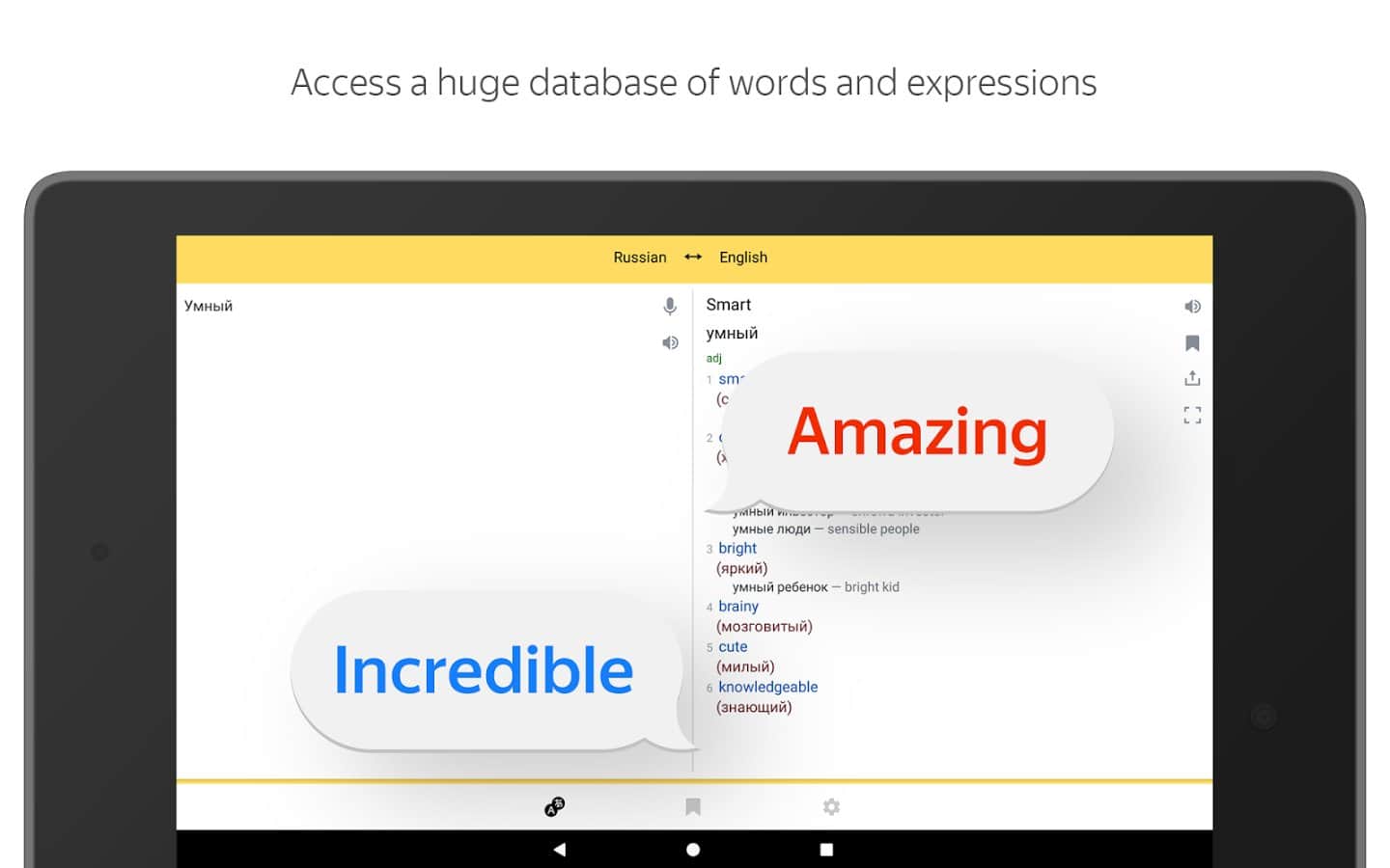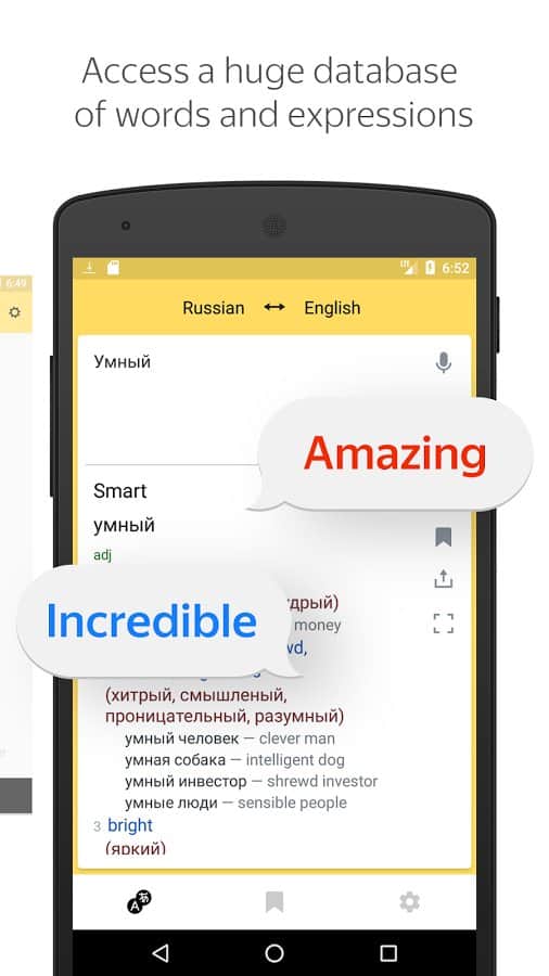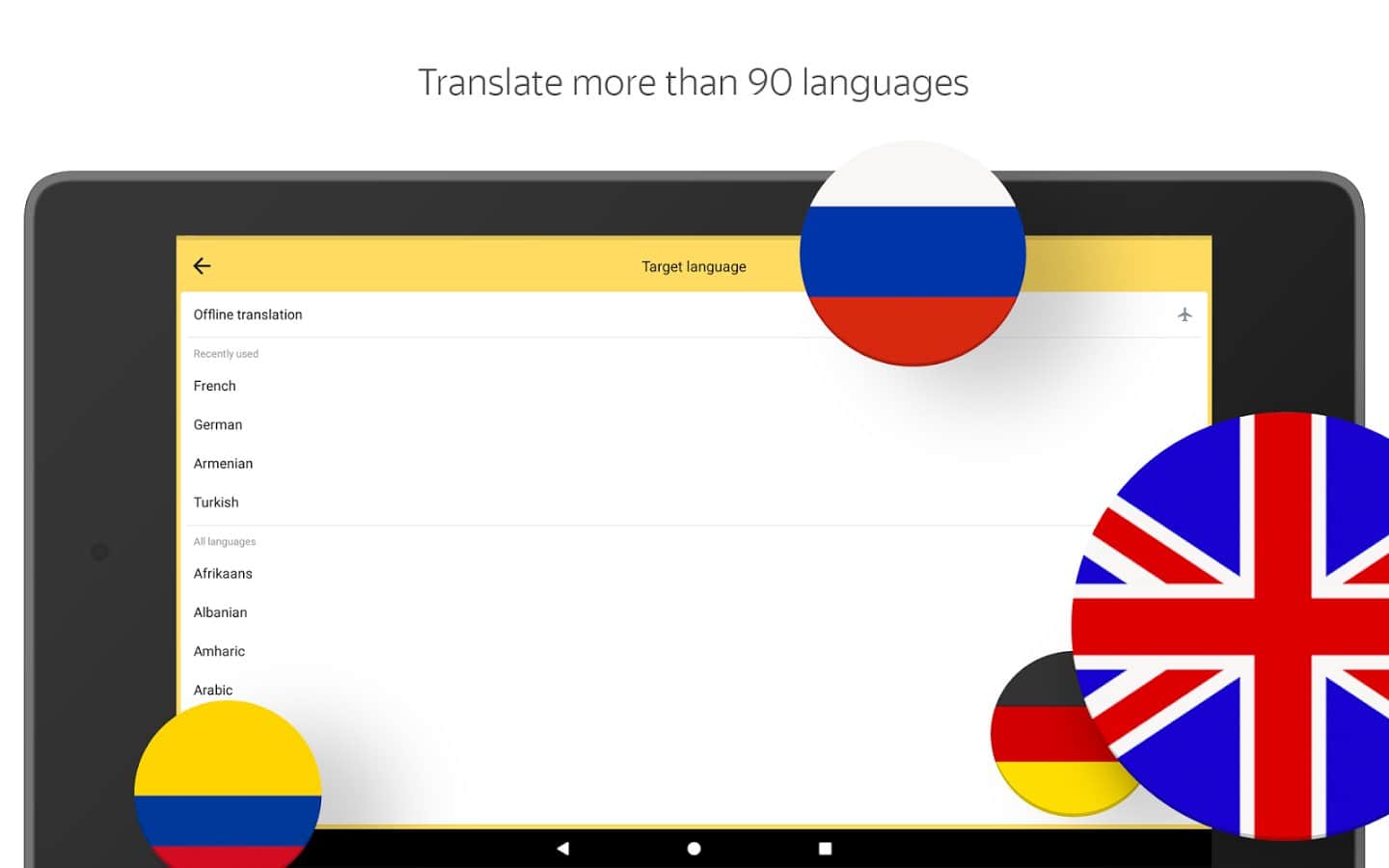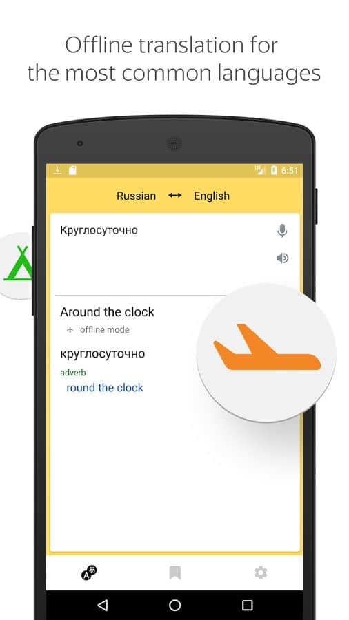 Yandex Translator – una gran aplicación de los desarrolladores de Yandex. La aplicación tiene muchas funciones que te ayudarán en el estudio o el trabajo. Sin conexión, puedes acceder a más de 90 idiomas, para ello solo necesitas descargar los diccionarios que desees. También en la aplicación actual, soporte para marcación por voz y texto por voz, artículos de diccionario con ejemplos e incluso soporte para entrada de fotos. ¡Una aplicación indispensable que te ayudará sin ocupar mucho espacio en tu dispositivo Android!