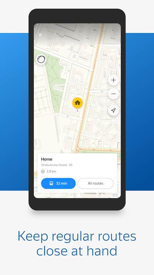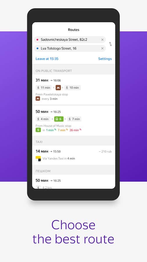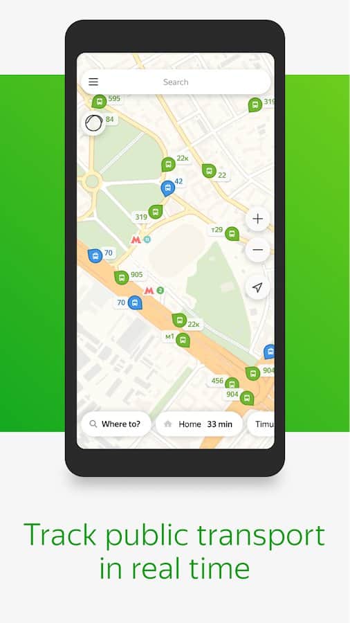 Yandex.Transport será útil para todos los que utilizan los servicios del Navegador para moverse por la ciudad en transporte público y navegar por las rutas.