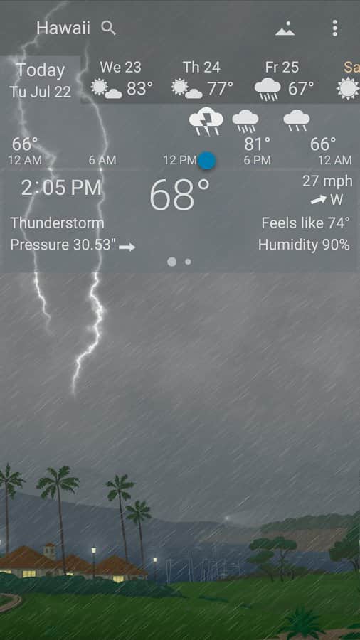 Para diversificar el clima habitual de diferentes maneras, por ejemplo, aplicarlo al hermoso paisaje en la pantalla de su smartphone/tableta. YoWindow muestra el clima real en la pantalla (si tienes demasiada pereza para mirar por la ventana), y la previsión: solo mantén tu dedo en la línea de tiempo y verás cómo cambiará el clima a lo largo del día, también está disponible la previsión para varios días por adelantado. De la misma manera, puedes ver el amanecer y el atardecer. Los paisajes donde se mostrará el clima variarán dependiendo de la hora del día, el clima y la época del año. Además, la aplicación cumple con el papel de fondo de pantalla en vivo informativo. Proveedores de clima, en este caso, yr.no y NWS.