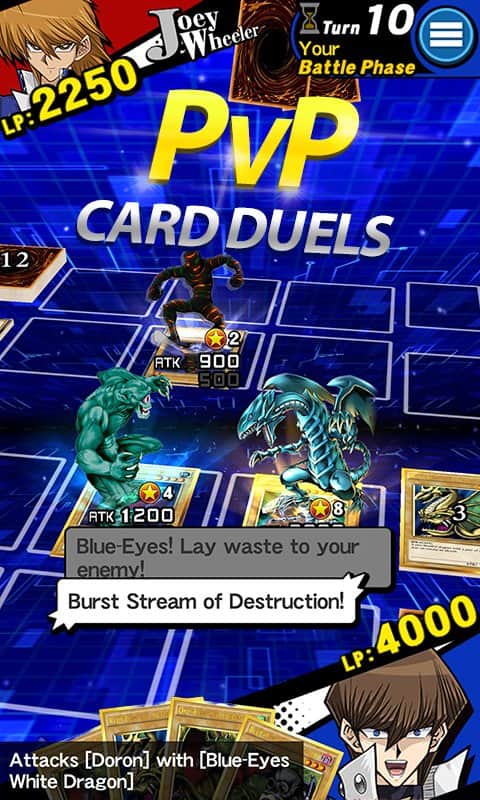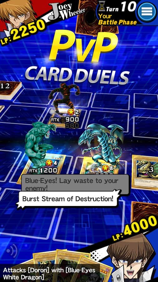 ¡Yu-Gi-Oh! Links Duel – juego de cartas para Android, creado a partir de la trama del famoso anime y manga Yu-Gi-Oh. En este juego te encontrarás con personajes ya conocidos como Yugi, Kaiba, Joey, Mai y otros. Colecciona una colección única de cartas y desafía a jugadores experimentados de todo el mundo, organizando duelos. En el juego también te encontrarás con monstruos peligrosos a los que necesitarás vencer y así llegar a la cima de la tabla de clasificación. Sumérgete en un mundo de juego único y lucha en duelos con los mejores jugadores, organizando emocionantes partidas. Los jugadores del juego apreciarán la excelente gráfica, la animación 3D y las emocionantes batallas.