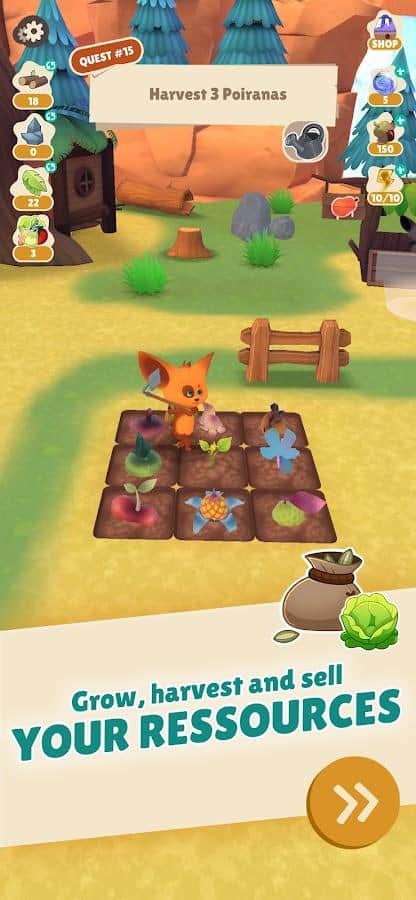 - Administra tu terreno, cultiva y cosecha vegetales, manteniéndolo fértil.