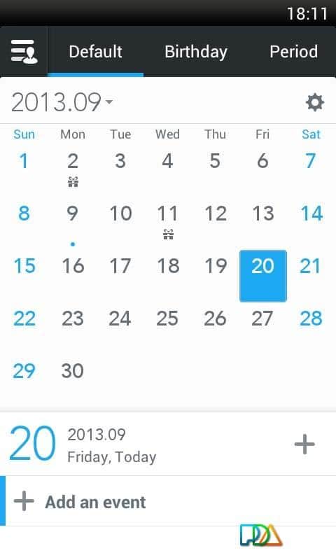 ZDcal-Calendario, Agenda, Periodo - función de calendario para Android. La aplicación tiene un bonito diseño, así como la capacidad de crear múltiples calendarios en uno, importar los cumpleaños de tus amigos de Facebook y también tiene una serie de otras funciones: