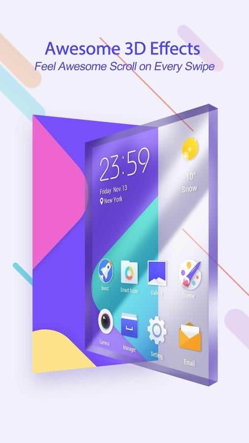 ZERO - un lanzador pequeño y bastante rápido. Además, esta aplicación bastante bonita tiene un motor 3D con sorprendentes efectos 3D. Una de las características es la velocidad: 0,2 segundos para iniciar con un 100% de memoria. Tienes acceso a temas premium gratis y para siempre, así como fondos de pantalla en HD y iconos. El bloqueo de pantalla se realiza con un solo toque - ¡es muy conveniente!