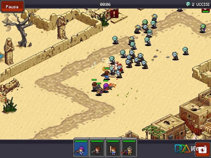 Zombie Commando - tirador en tiempo real en arte de píxeles - ¡comienza el trabajo en equipo para matar zombis! Entonces, como entiendes, ¡reúne a tu equipo y a la causa - para destruir a los zombis sin cerebro! ¡Cada uno de los 8 miembros del equipo pertenece a una de las 15 categorías posibles de héroe! El juego tiene 5 partes y 50 niveles en una variedad de ubicaciones - desde China hasta Egipto, desde laboratorios secretos hasta las inquietantes y frías mazmorras. Completa misiones, mata zombis, defiende tu posición, recluta población, crea trampas, etc.