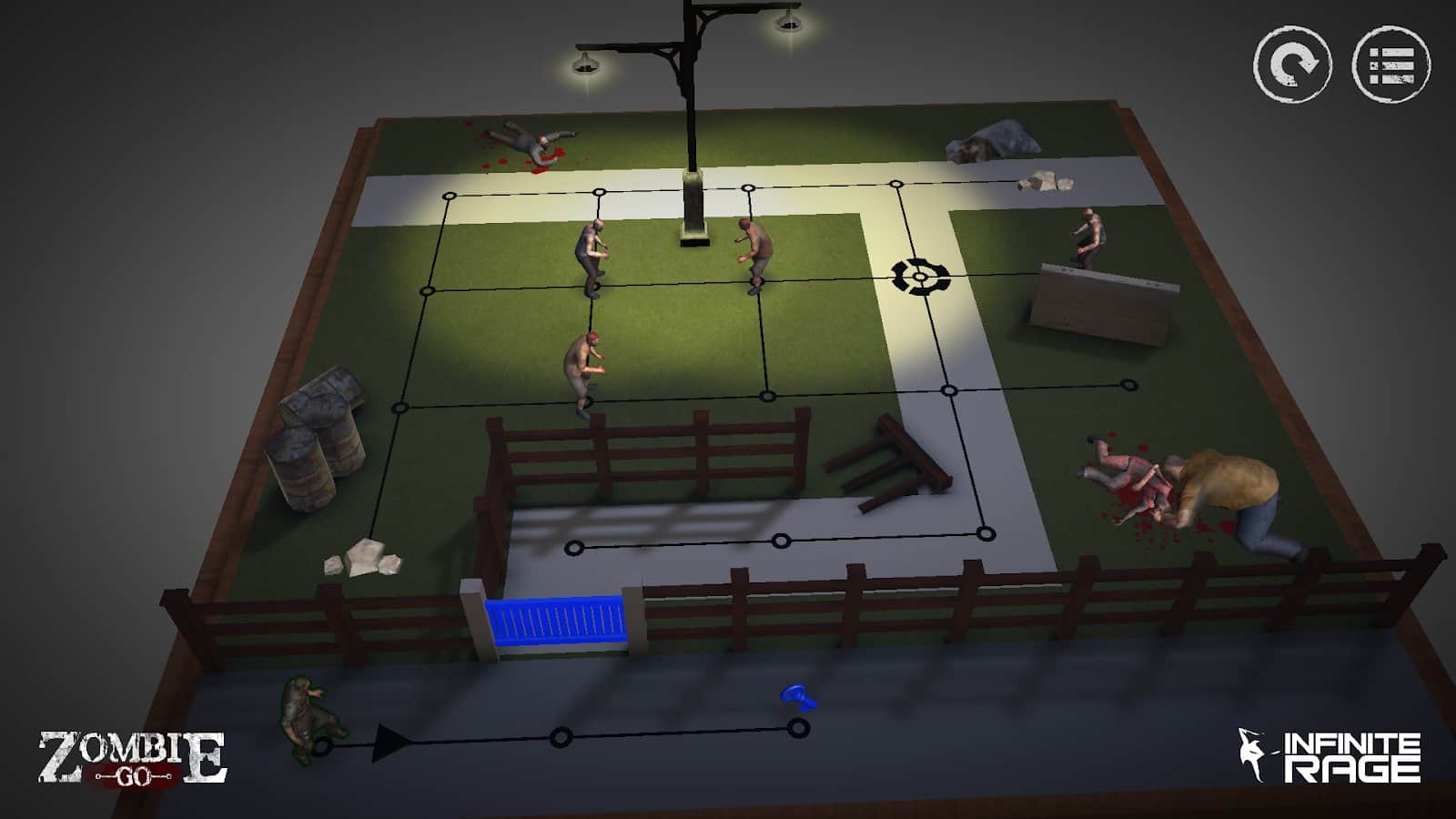 Zombie GO - Un juego de rompecabezas de horror - un juego de rompecabezas por turnos para Android, que tiene más de 50 niveles. En este juego te encontrarás en un mundo postapocalíptico donde te enfrentarás a horrendos zombis y monstruos. Tu tarea principal en este juego es escapar de los zombis y sobrevivir en este peligroso mundo. Navega por los laberintos y considera cuidadosamente cada paso. Usa diferentes herramientas y armas para defenderte de los zombis y destruirlos. En este juego te espera una variedad capaz de pasar niveles, muchos enemigos y hermosos gráficos.