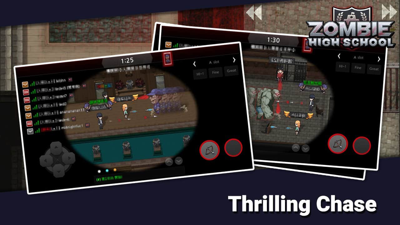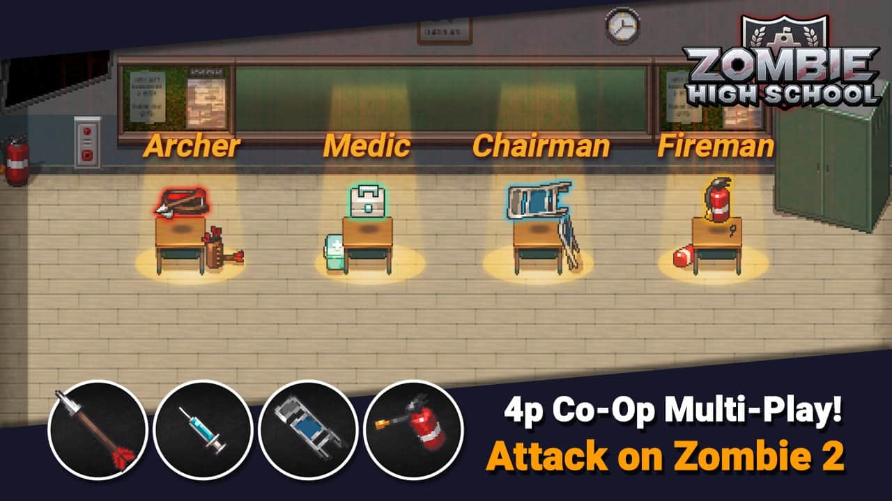 Escuela secundaria de zombis - Aquí hay un juego único en línea para móviles en tiempo real, Zombie High. En este juego puedes convertirte en un estudiante de la mejor escuela privada del mundo, pero no todo es tan simple como parece. Los zombis están atacando la escuela, y la responsabilidad de salvarla recaerá sobre tus hombros. Sube a la cima del ranking entre 8 jugadores utilizando diversas habilidades para que los zombis no puedan alcanzarte. O, si prefieres tareas más peligrosas, pon a prueba tus habilidades en feroces batallas contra los zombis. Pero ten cuidado, los zombis no se quedarán de brazos cruzados y te dejarán vagar libremente por la escuela. Deberás prepararte bien para derrotarlos.