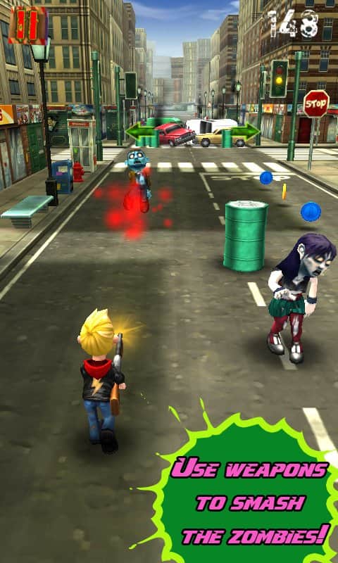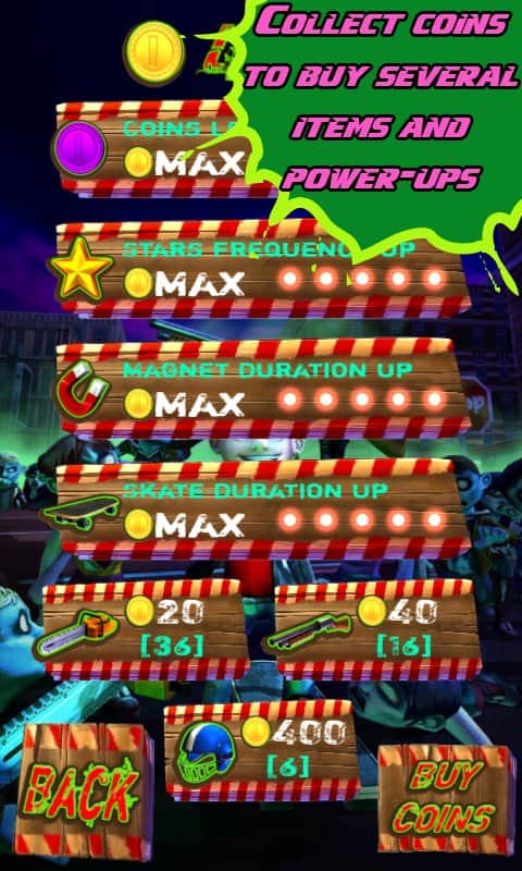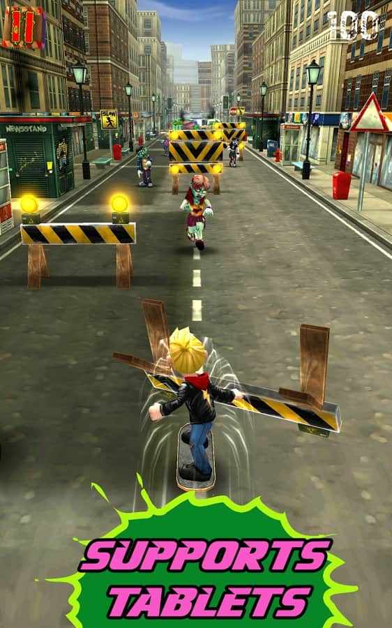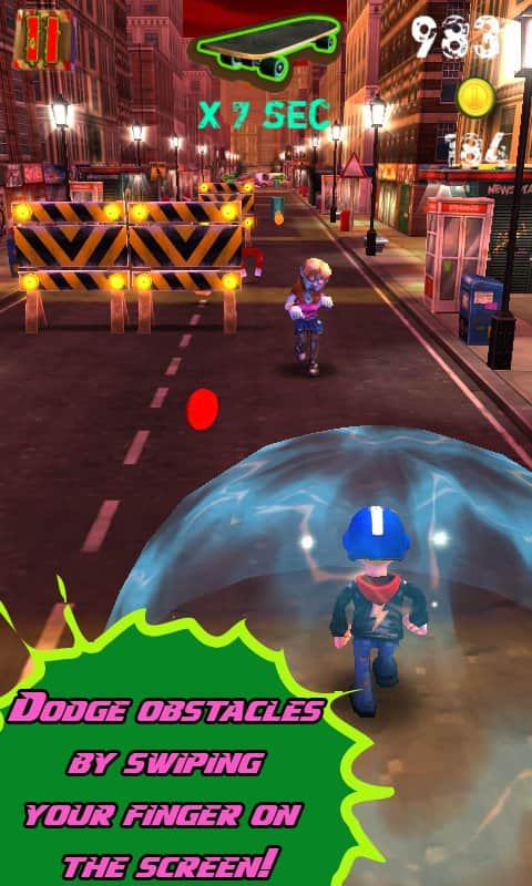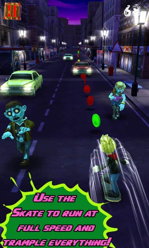 ¡Zombis Tras de Mí! - Tu pueblo está invadido por zombis hambrientos y tu único objetivo es no ser comido por estos viles monstruos. Lucha a través de muchos de los muertos vivientes con una motosierra y una escopeta. Usa el monopatín y tus habilidades acrobáticas para superar todos los obstáculos y evitar los barriles explosivos esparcidos, que deberás sortear. Recoge monedas para comprar algunos artículos necesarios y obtener bonificaciones en la tienda virtual.