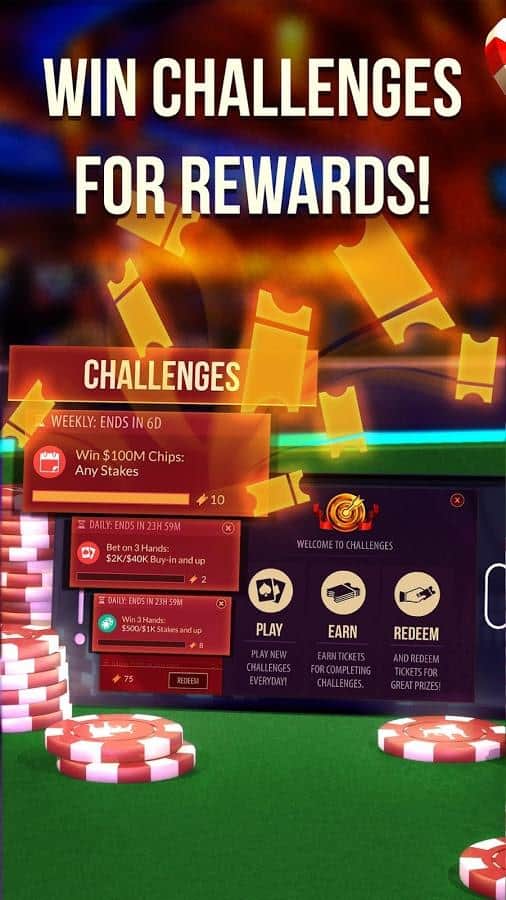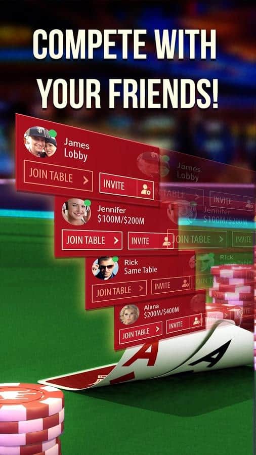 Zynga Poker – ofrece a todos la experiencia auténtica de jugar al póker con un diseño refinado, junto con nuevas características que te ayudarán a competir y mejorar tus habilidades. Únete al juego número 1 de Texas Hold 'Em Poker. Puedes jugar con amigos o intentar tu suerte con millones de otros jugadores todos los días. Ya seas un novato o un jugador experimentado, Zynga Poker te ayudará a encontrar o afinar tu estilo de juego, mientras que el aspecto moderno y las animaciones de calidad te ayudarán a relajarte y te llevarán directamente a la mesa de juego.